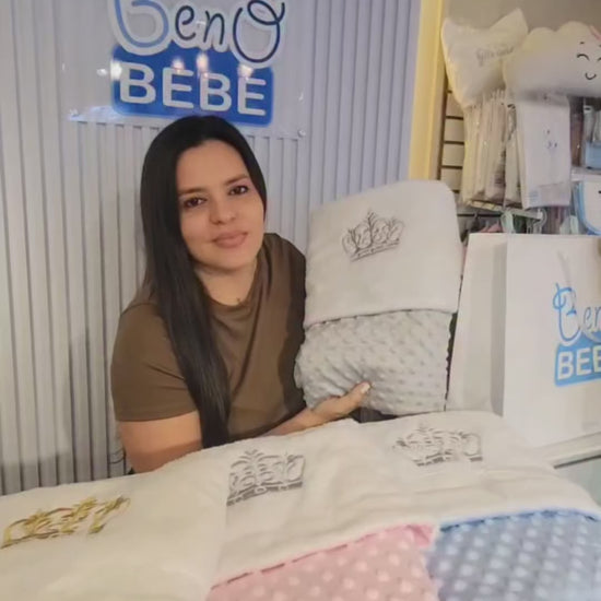 Añade una capa de calidez y elegancia al descanso de tu bebé. Nuestra Manta Polar Premium es una pieza versátil diseñada con un reverso en Polar Blanco ultra suave que garantiza confort térmico. El exterior define su estilo con dos texturas de lujo a elegir: el divertido relieve de Velvet Burbuja o la sofisticada suavidad del Terciopelo. Ideal para el coche, la cuna o para arrullar, esta manta es hipoalergénica y esencial para el ajuar de todo recién nacido en Venezuela.