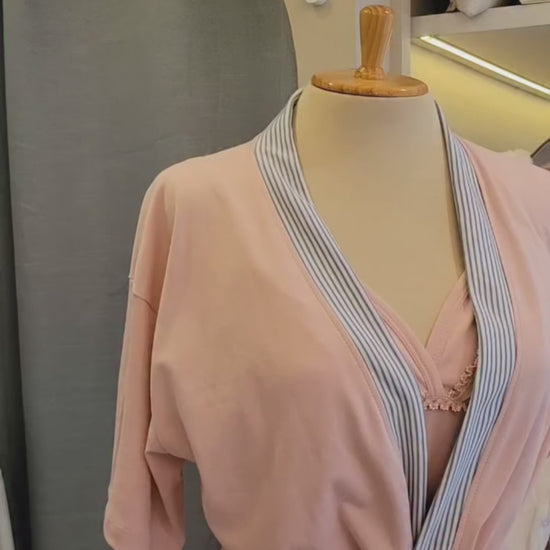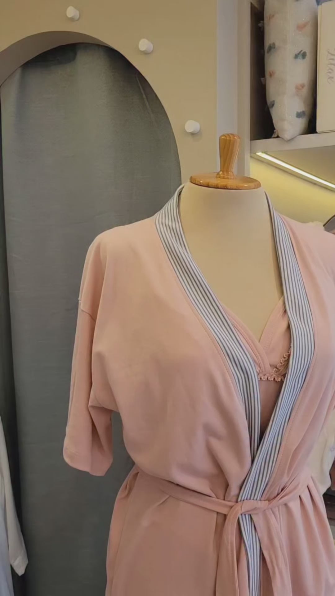 - Bata a juego con mangas ¾ y cinturón de amarre.