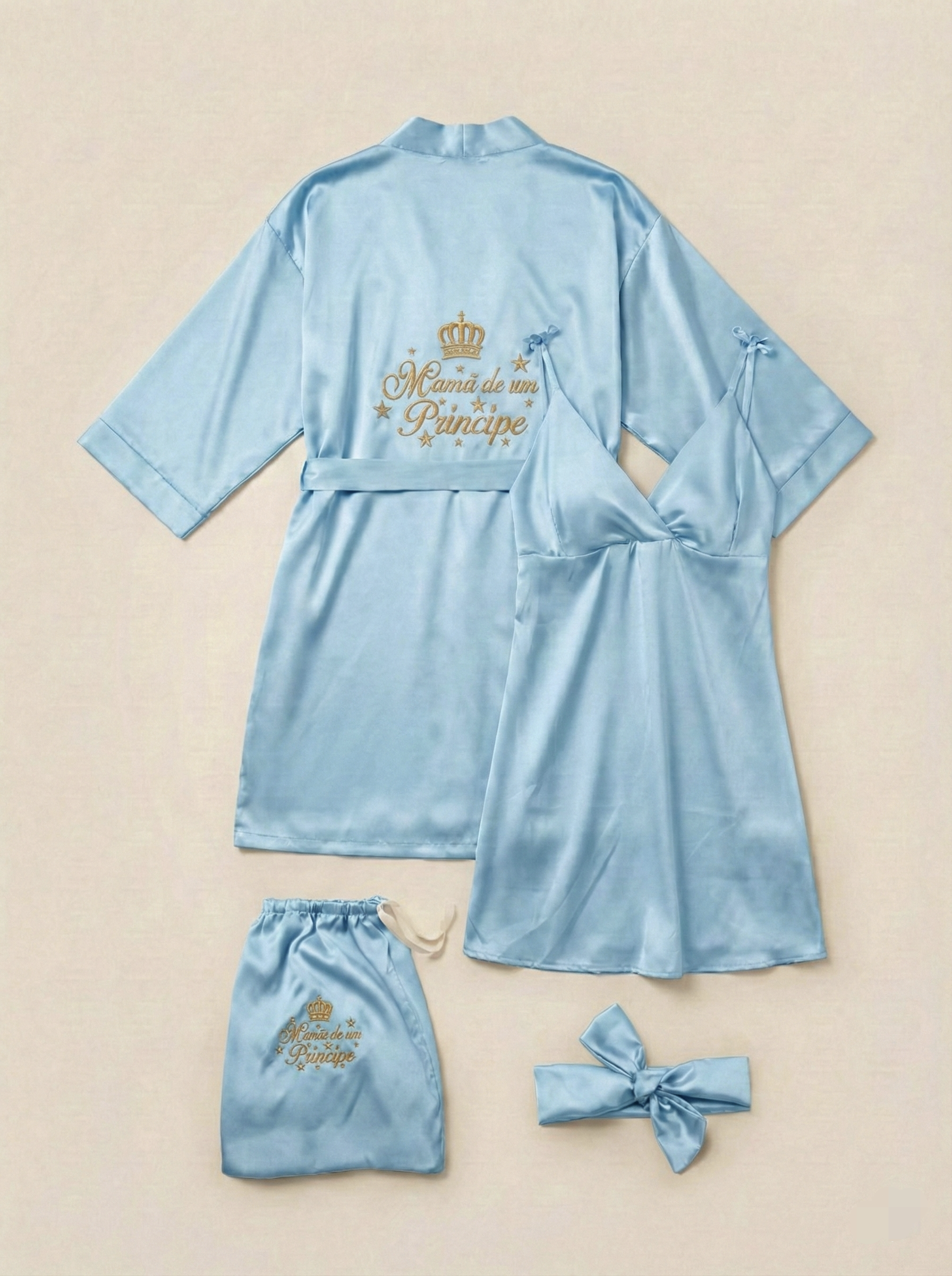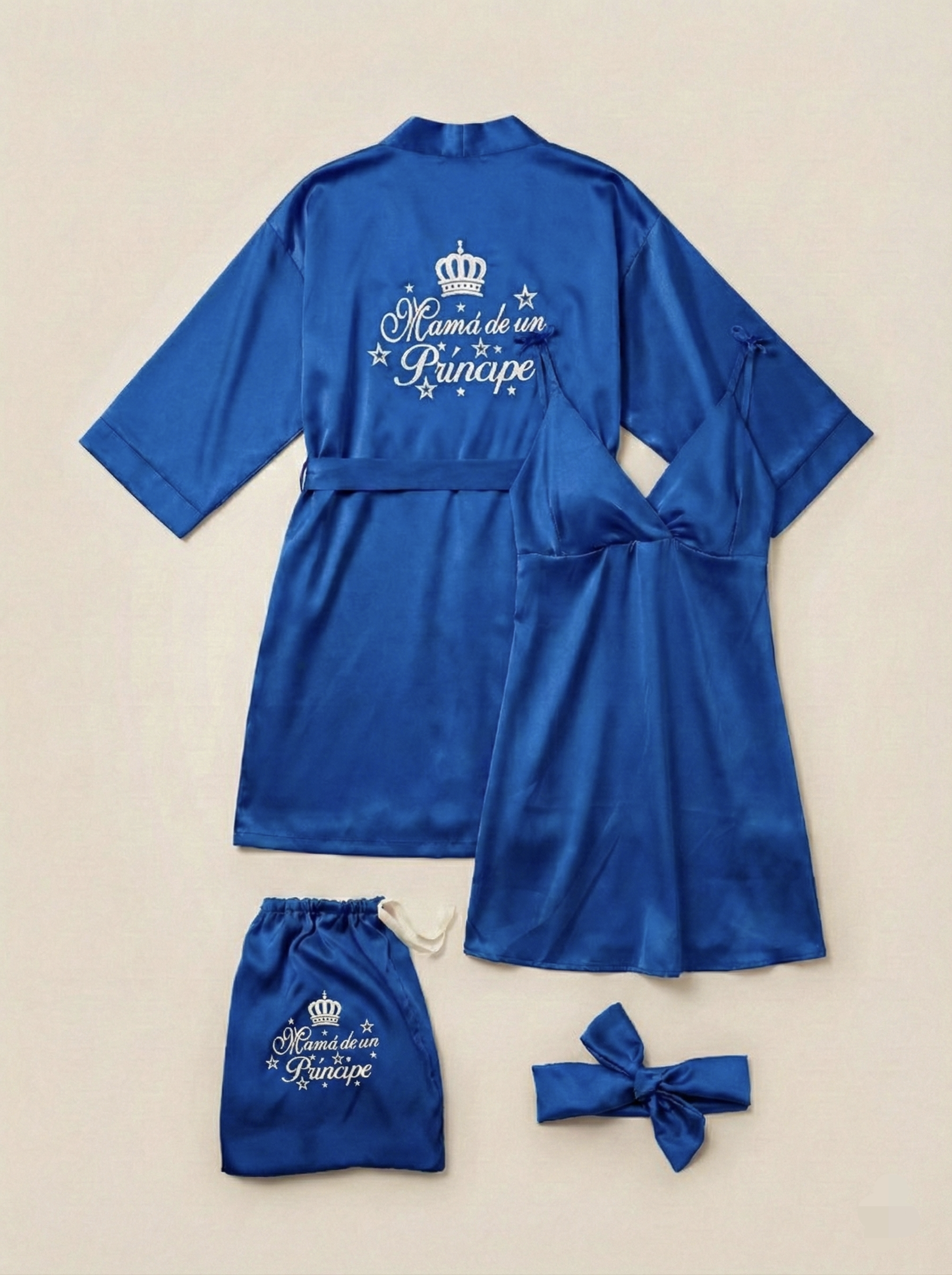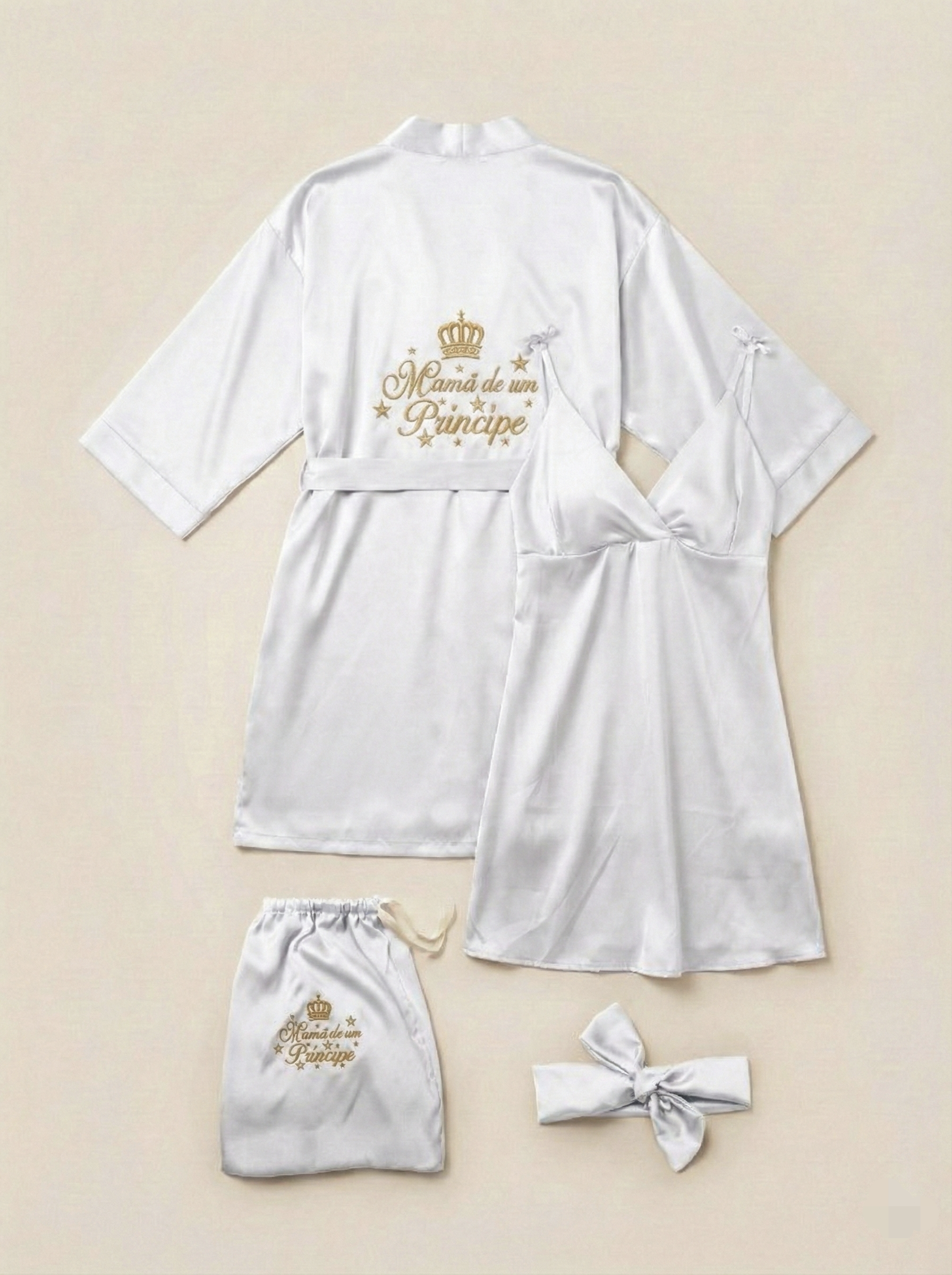 Luce radiante en el momento más especial de tu vida! Nuestro exclusivo Set Materno de Seda de 4 piezas está diseñado pensando en la comodidad y elegancia que necesitas durante tu estadía en la clínica y el postparto en casa.